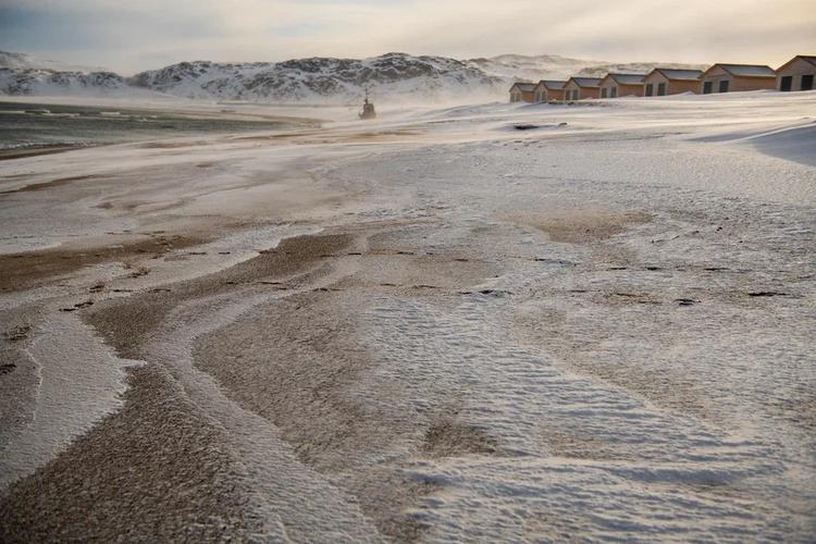 В Териберке переезд до каменного пляжа и водопада в снежный период на санях около 1 500 - 2 500 руб./чел.;